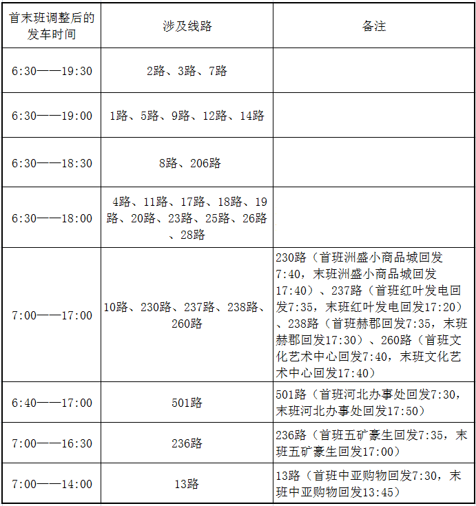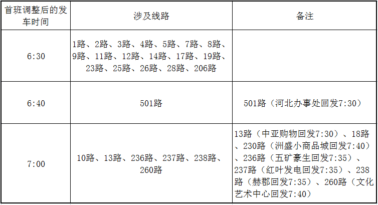 (一)2月15日、16日(三十、初一)首班延后發(fā)車(chē)、末班提前收車(chē),具體明細(xì)見(jiàn)下表: